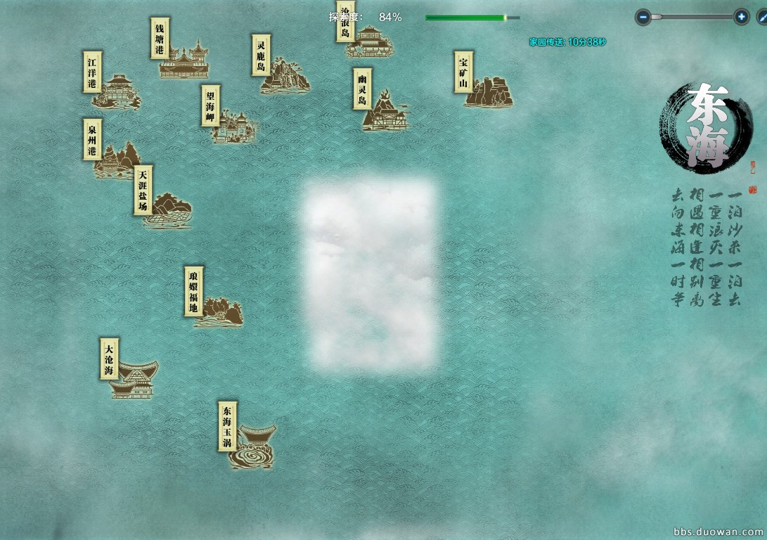 探索中间沿着返航线跑一圈即可。84%基本已经探索完成所有大区域的迷雾,