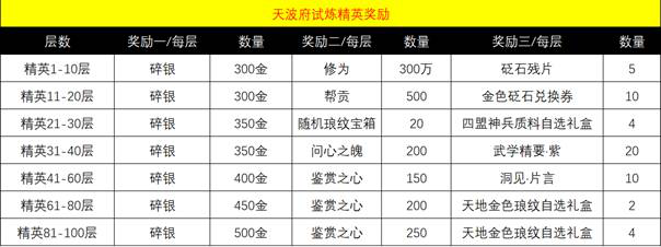 精英试炼100层所有奖励,每层的三种奖励可以全部获得