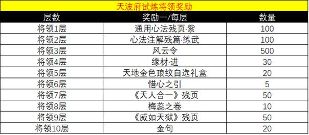 将领试炼10层所有奖励如图: