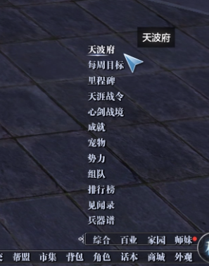 少侠可以在右下角的“综合-天波府”点开试炼界面